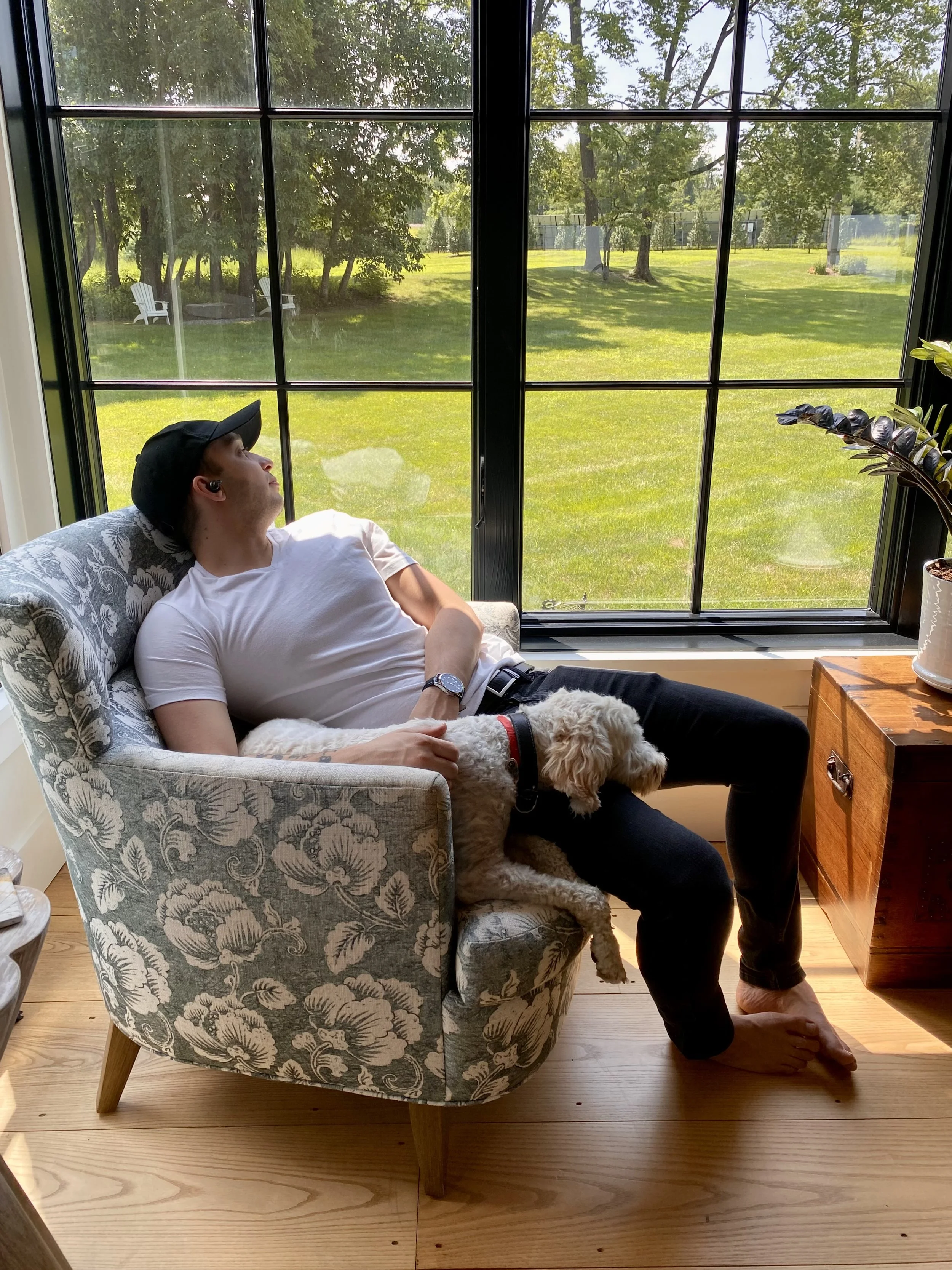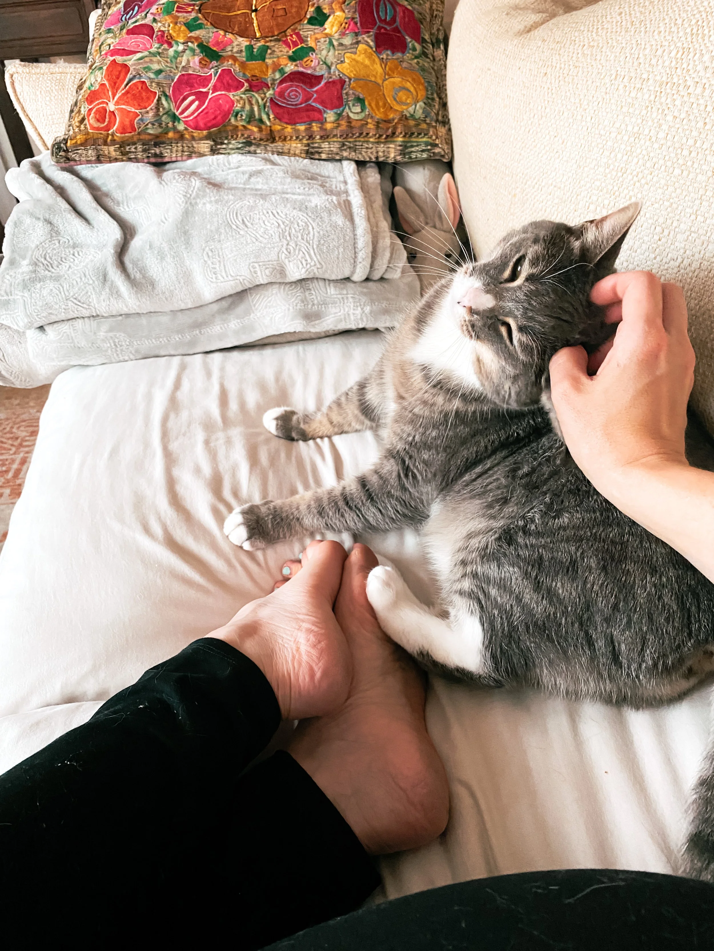Erika: I’m a house whisperer, who speaks fluent feline. In my day to day I’m a Home Coach- helping people’s spaces better align with their lives- and an abstract artist with a focus on custom paintings. I own a home called The Sanctuary in Hunterdon County NJ which I rent via Airbnb (I’m a super-host and guest favorite) and to long term housemates. In my spare time I’m enjoying fashion, foodie explorations, and probably a good show along side Cody.